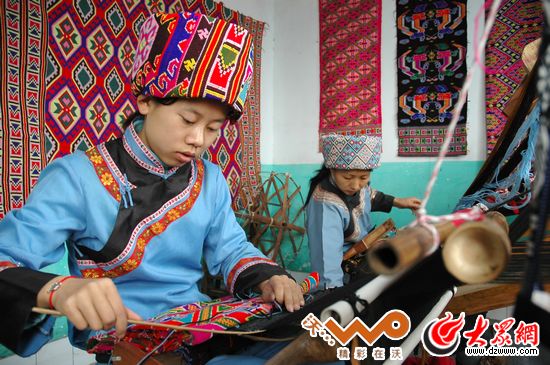 一位土家族婦女正在編織西蘭卡普,西蘭卡普是中國四大名錦之一