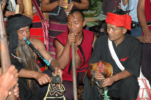 木鼓是佤族的象征,是佤族人民崇拜的神圣之物。他們認為,木鼓是 “通神之器”、“通天之鼓”, “生命靠水,興旺靠木鼓”。因此,平時不能亂動,只有祭祀報警和節日喜慶等重大集體活動時才能敲打。由于木鼓的這種神圣地位與作用,“拉木鼓”便成為佤族極為隆重、盛大的宗教祭祀活動。