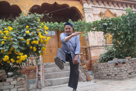 有誰能想到,作出這樣動作的黑亞孜老人今年已經(jīng)90歲高齡了呢