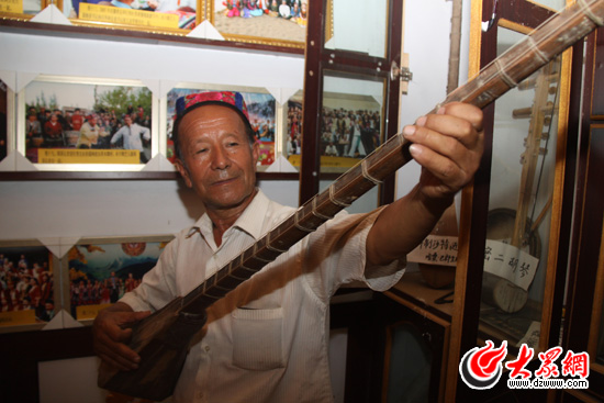 老人給記者介紹說,這些都是以前著名的木卡姆藝人使用過的樂器,有著一百多年的歷史了,前段時間剛有北京的一所博物館來人想花數萬元的高價把這些樂器收購走,老人連想都沒想就一口拒絕了。“這些都是我的寶貝,給我多少錢都不賣!”