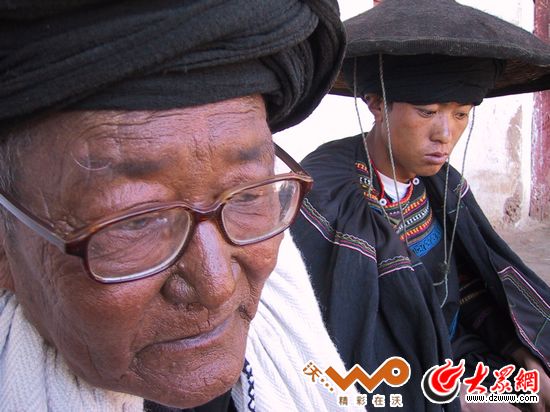 十年前拍的照片,老畢摩頭上長長的纏頭巾。
