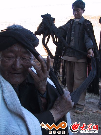 大眾網(wǎng)-聯(lián)通3G寧蒗10月2日訊(特派記者 王磊)10月2日,“黨旗漫卷中國紅——走進56個民族家庭”采訪團到達寧蒗縣新營盤上村,來到一個被當?shù)厝顺蔀椤鞍⒂嗉摇钡漠吥彝ゲ稍L。10年前,這家的老畢摩阿余洋架給領隊施曉亮講了一個故事,從古至今;10年后,已是小涼山著名畢摩阿余雙體,他給我們講了他的夢想:完成爺爺阿余洋架未竟的事業(yè),辦一個畢摩學校,讓更多的年輕人了解、傳承彝族的這種民族文化。而缺少資金的支持讓他不得不選擇先發(fā)財后圓夢,他在村里第一個貸款種起了投資和回報都非常高的珍貴藥材,他要為理想賭一把,他相信自己能賭得贏。