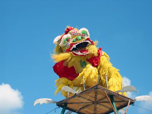 表演時,舞獅者攀上由20多張高凳疊起的“金山”施展雄姿,時而在半空高懸的鋼索繩上跳躍翻騰,時而在刀山頂上表揚稱“世界一絕”的刀尖頂肚旋轉……一個個高難度動作令人贊嘆不已。“天壇圣水”、“三獅戲樓臺”、“女子樓臺獻藝”、“高樁、天橋薈萃”、“瑞獅爭艷”等幾個精彩的節目,也吸引著眾多游客的注意。