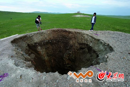 草原的傷痕。各種探礦隊走馬燈一樣來草原,留下這些傷疤一樣的廢窟窿。