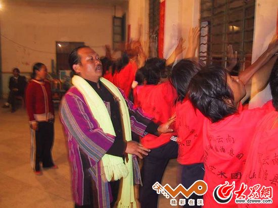 10年前茶紅明在他創(chuàng)辦的司崗里藝術(shù)團里培訓(xùn)他的佤族弟子們。