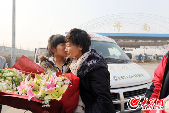 大眾網特約小記者施哲瑩給母親一個思念已久的吻