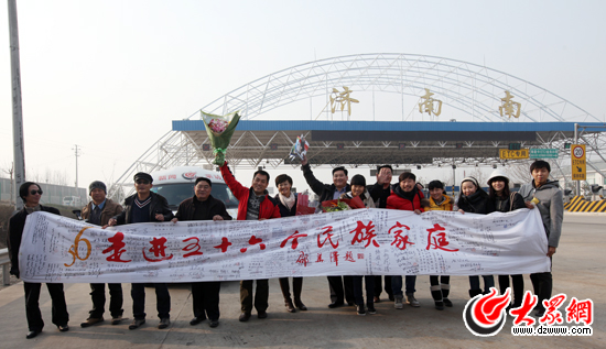 [提要] 12月21日下午,由大眾網、中國民族報發起,全國90家網站及國內知名媒體共同主辦的“黨旗漫卷中國紅——走進56個民族家庭大型采風活動”在完成180天、歷經20多個省(市、自治區)總路程40000多公里的采訪后完美收官。在繞城高速濟南南出口,數十位媒體記者及社會各界人士迎接了采訪團的凱旋。