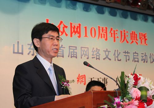 山東省委外宣辦主任、山東省政府新聞辦主任李建軍在大眾網(wǎng)十周年慶典上致辭,他首先代表山東省委宣傳部對(duì)大眾網(wǎng)開(kāi)通十周年表示熱烈的祝賀,對(duì)大眾網(wǎng)十年來(lái)為我省宣傳文化工作,尤其是網(wǎng)絡(luò)宣傳文化工作所做出的突出貢獻(xiàn)表示衷心的感謝。