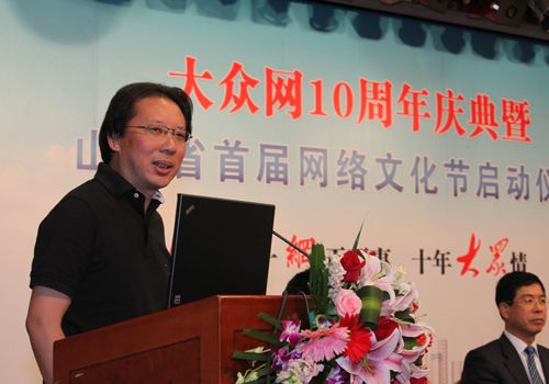 大眾網(wǎng)總編輯朱德泉主持大眾網(wǎng)十周年慶典暨山東省首屆網(wǎng)絡(luò)文化節(jié)啟動(dòng)儀式。
