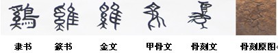 “一唱雄雞天下白”,對于需要早起而又沉睡“不知曉”的農(nóng)人來說,黎明報曉的提醒是多么重要。因此,雄雞的創(chuàng)作不僅僅作為家禽的形象出現(xiàn),它是一個民族勤勞不輟、奮斗不息的象征,又是一個社會和諧的象征。社會動亂往往會造成“雞犬不寧”、“雞飛狗跳”,甚至會出現(xiàn)“千里無雞鳴” 的毀滅性后果。而“雞犬之聲相聞”的祥和氛圍則是古人所向往的。創(chuàng)作者把雄雞放在顯要位置,應(yīng)該是有一定的目的。而這個形象無疑是被甲骨文和金文中所借鑒,成為今天的“雞”字。