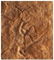 該圖位于骨臼的正上方,相當于山東北部略微偏西地區(qū)。4600多年以前,蚩尤率部正是從這一帶出發(fā),向河北涿鹿一帶發(fā)展,準備去開辟北狄疆域,由此引發(fā)了與炎黃集團的涿鹿之戰(zhàn)。在這次戰(zhàn)爭中蚩尤雖然戰(zhàn)死,但仍被后人所崇拜,他的形象永遠留在了人們的心中。創(chuàng)作者顯然是懷著崇敬的心情,捕捉了蚩尤的形象特征,創(chuàng)作了這幅惟妙惟肖無比珍貴的“戰(zhàn)神蚩尤”圖,來紀念這位東夷民族的人文始祖。后人不僅寫“蚩”字時這樣寫,而繪制或雕塑的蚩尤像也與此圖的形象極其相似,足見后人對于蚩尤的描繪極有可能是以此為藍本。