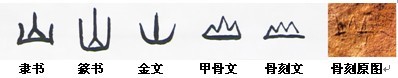 三、“山水相依”圖“報曉”圖下方是個“山”字,這“山”字頗為形象,創(chuàng)作者先是畫了三個山形,下方又是一條斷續(xù)的長線,這可能就是古人眼中的水面、河流或地平線了。從圖的整體布局看,此處應(yīng)是東夷地區(qū)的中南部,這里有泰山、蒙山等名山,又近臨微山湖和東平湖,有南北走向的沂河、汶水及泗水河,可謂山青水秀,美麗富饒。因此筆者將其命為“山水相依”圖。山水表現(xiàn)手法亦為后人所借鑒,甲骨文、金文以及古篆中都保留了“山”字這一寫法。