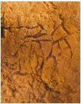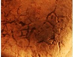 五、“倉頡待沮” 骨臼的另一側有個獨立的僵直著脖子人物頭像,頭頂扎一發髻,鼻梁尚清析,臉右側隱約有三四條較深的皺紋,就像幾只無法睜開的眼睛,臉左側腐蝕較重,好象有一只眼睛。頭像右側上下布滿了似鳥、似獸的許多圖案。