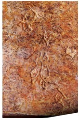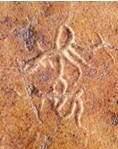 在昌樂骨刻19號獸骨殘片中同樣可以清晰的看出對母系文化的描述。這是一幅以母親為主題的頗為生動的游玩圖。圖中心好象是一位母親(孕婦),其造型也有點像“孕”字,正在信步向前,后面好象是她的愛子,手中高甩著一根樹枝,或是一件玩具。下方是一個男性老者的形象,畫的結構像是一個“男”字的輪廓,中上方和右側是兩個少年兒童,似乎都在歡唱、蹦跳著,前面孩子稍大一點,正朝對面飛奔而去,后面小一點的孩子正在不顧一切的拼命追趕。兩個孩子的造型也都與“子”字頗為相似。最上端也有三人,前面一位女子正跨著優美的步子,其造型也恰像一個“女”字,左手攜著一位少兒,像是邊跑邊回看那位擦肩而過的男子,那位男子也好像正在回頭看著她。這是一家三口正出行游樂?還是那位孕婦的大孩子?