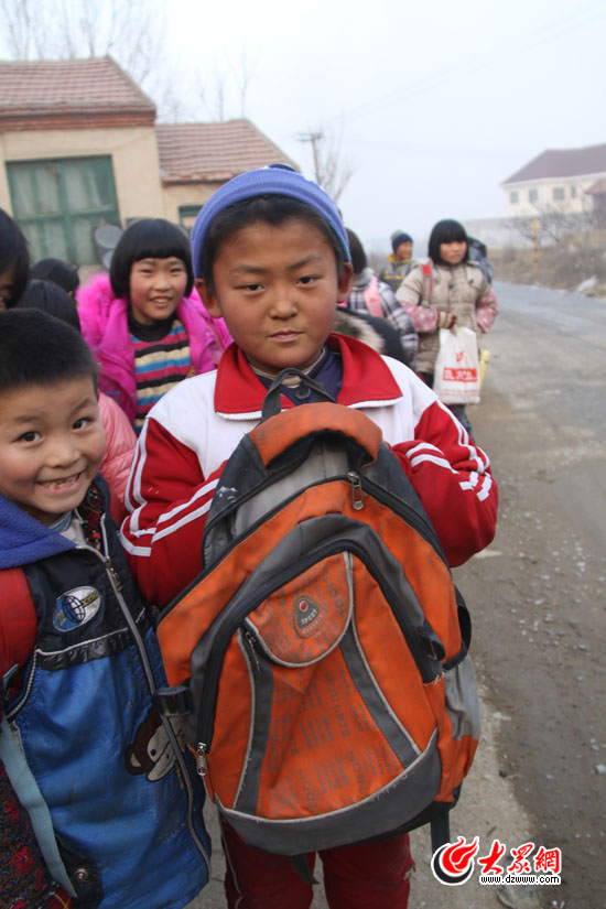 在放學(xué)回家的路上,小學(xué)生的郭廣澤告訴記者,身上背的舊書包早就被同學(xué)扯壞了,但仍一直用了3年,除了新衣服,他還想有個新書包。