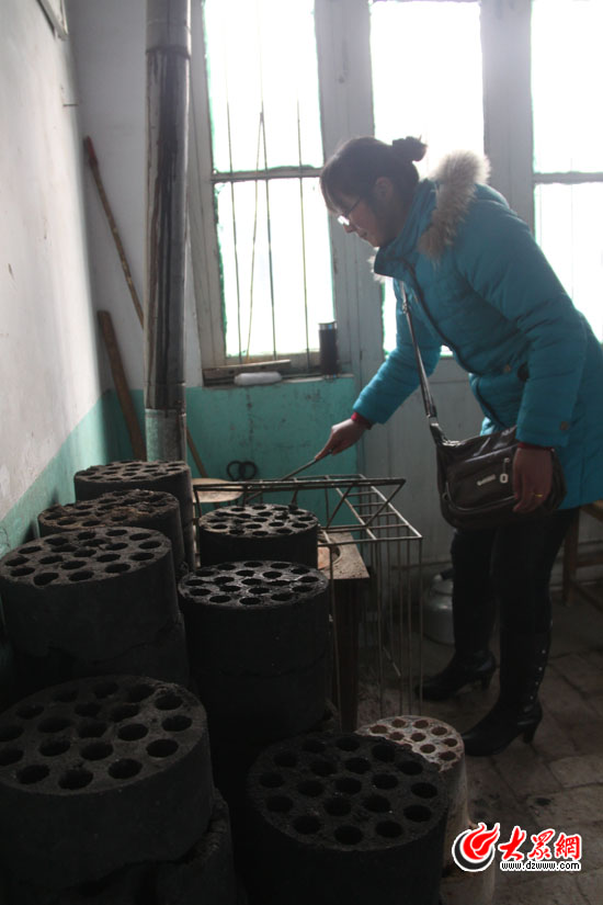 在穆家小學幼兒園,由于教室沒有暖氣,班主任老師在教室一角用蜂窩煤生爐子給50個孩子取暖。