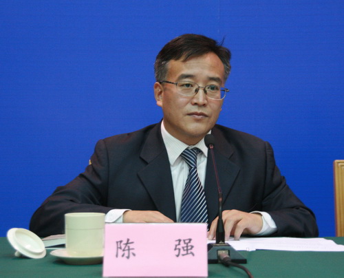 山東省人民政府新聞辦公室宣傳處處長(zhǎng)陳強(qiáng)主持新聞發(fā)布會(huì)