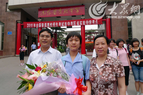 李馥麟走出考場后和她的父母幸福的合影。