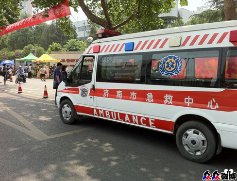 為了應對考試中的突發情況,全市120急救車出動,分布各考點進行醫療保障工作!圖為七中考點外的省武警醫院分中心急救車!
