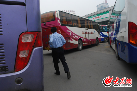 我心里暗自打鼓,人還能有多少啊,再忙,連接受采訪的時間都沒有?為了不耽誤事兒,還是定了早上5點的鬧鐘,起床洗刷完也沒吃早飯就出了門。不到5點半,天才蒙蒙亮,路燈都還亮著,行人還很稀少,“到了汽車站也就6點,應該晚不了。”我心里想著,可是沒想到到了地方才發現自己錯了,早上6點鐘,濟南長途汽車總站就已經是人山人海,大廳里人挨著人,到處都是提著大包小包準備外出的行人。外面發車區的車輛,更是一輛接著一輛,穿梭不斷。就在人群和車輛之間,張傳滿正一只手拿著對講機,一只手比劃著引導車輛行進。