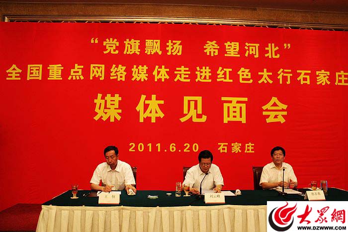 2011年6月20日下午,“黨旗飄揚 希望河北”全國重點網絡媒體走進紅色太行石家莊站媒體見面會在石家莊世貿廣場酒店舉行。會議由石家莊市委常委、宣傳部長孫萬勇主持,中共石家莊市委常委、市委副書記劉云峰,石家莊市委常委、宣傳部長孫萬勇,河北省網管辦副主任、省委外宣局副局長王恒出席了見面會。