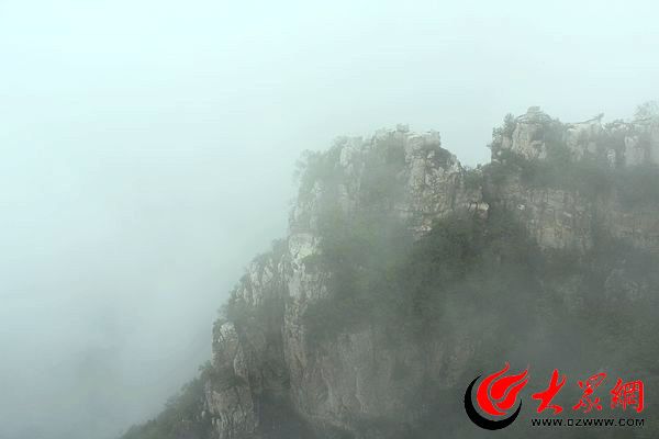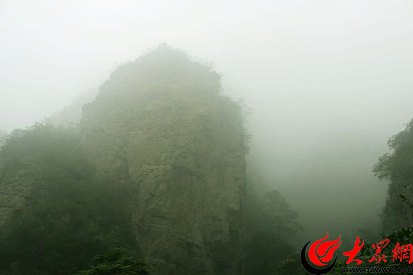 早晨,雨后的狼牙山煙霧繚繞,網絡媒體的記者編輯們在一片霧氣中出發了,雖然有霧,但是還是可以看得出狼牙山的險,走進紀念館,導游向記者們講述了當年的故事,