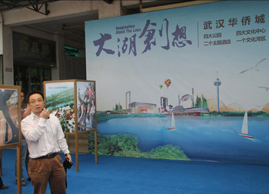 武漢華僑城工作人員繪聲繪色地向記者講解華僑城武漢品牌群