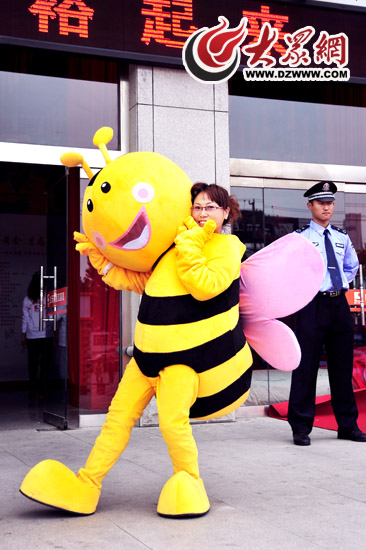 [提要] 本次藝術節還特別設計了吉祥物,分別叫黃黃和金金。圖為吉祥物扮演者露出廬山真面目!