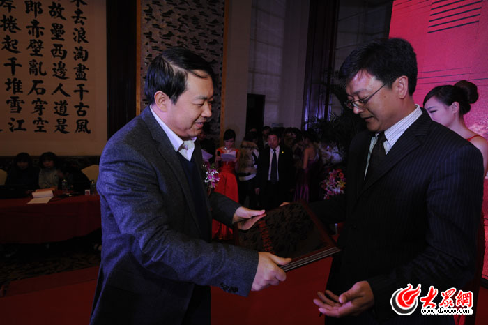 山東省網絡文化辦公室主任劉致福為獲獎單位頒獎
