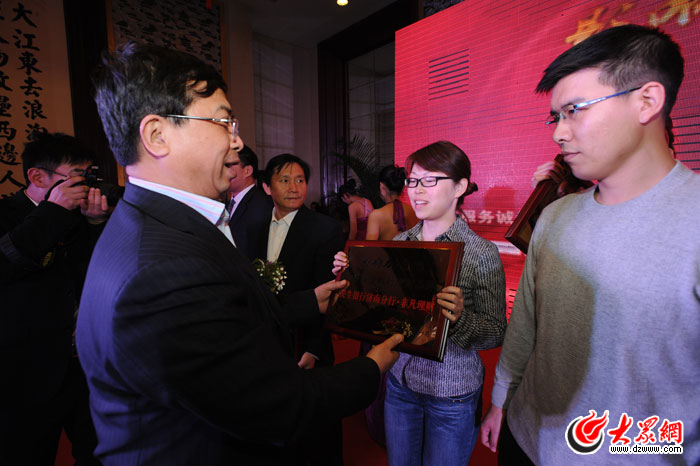 山東省人民政府新聞辦公室主任李建軍為獲獎單位頒獎