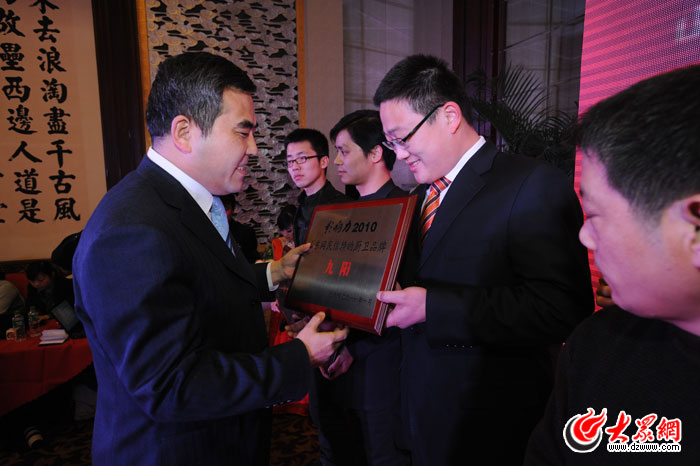 大眾網副總編輯姜長勇為獲獎單位代表頒獎