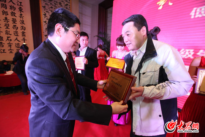 大眾網(wǎng)總編輯朱德泉為獲“頂級(jí)生活倡導(dǎo)獎(jiǎng)”獲獎(jiǎng)單位頒獎(jiǎng)
