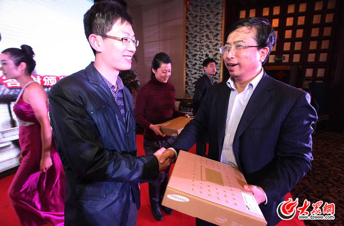 山東省人民政府新聞辦公室主任李建軍為幸運(yùn)嘉賓頒發(fā)獎(jiǎng)品