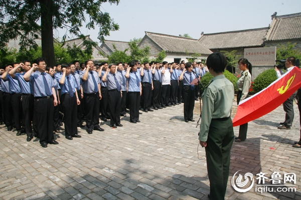 在山東省政府成立紀念碑前重溫入黨誓詞