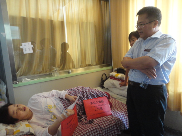 圖為山東步長制藥負責人送去慰問金