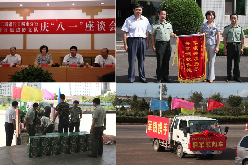 在“八一”建軍節(jié)到來(lái)之際,工行日照分行行長(zhǎng)帶領(lǐng)擁軍慰問(wèn)團(tuán)冒著酷暑先后走訪了日照軍分區(qū)、駐軍某部隊(duì)、日照市武警支隊(duì)、日照市邊防支隊(duì)、炮兵某預(yù)備役等當(dāng)?shù)伛v軍單位,代表全行員工向駐地官兵表達(dá)了節(jié)日的問(wèn)候并致以崇高的敬意,并為部隊(duì)武警、官兵送上了節(jié)日慰問(wèn)品,進(jìn)一步加深了軍銀合作,密切了軍民魚(yú)水情。