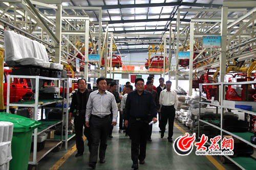 大眾網總編輯朱德泉在陵縣縣委常委、宣傳部長劉在軍陪同下參觀富路車業公司