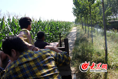 老鄉的駕駛技術實在是高,沒有前燈,沒有后視鏡,沒有轉向燈的拖拉機在公路上“突突馳騁”的時候,突然一個急轉,就轉入了一條一米多寬的土路上。路的一邊是玉米地,一邊是深兩三米的河溝。一塊塊泥土不時被車輪碾入河中,車斗內一邊尖叫不斷。