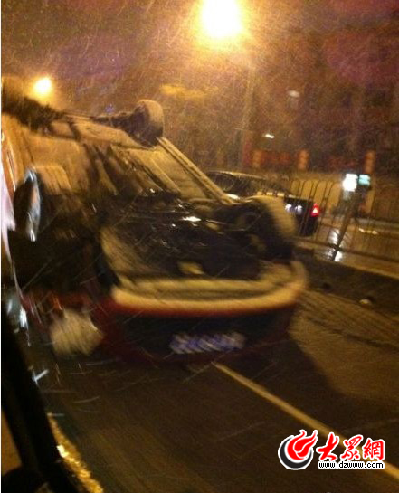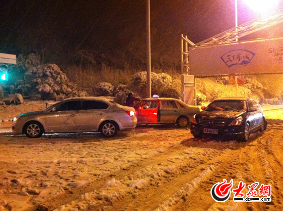 強(qiáng)降雪同樣帶來了市區(qū)道路濕滑、駕駛員視線模糊等問題。記者通過多種途徑了解到,濟(jì)南市區(qū)部分路段發(fā)生數(shù)起嚴(yán)重交通事故。18點(diǎn)左右,在濟(jì)南經(jīng)六路與營市西街交匯處,一輛紅色福特轎車在撞擊馬路中央防護(hù)欄后發(fā)生側(cè)翻,阻礙了該路段道路通行。21點(diǎn)左右,旅游路與千佛山南路交匯處發(fā)生多起交通事故,其中一輛黑色奧迪轎車與黑色尼桑轎車發(fā)生碰撞,事故較為嚴(yán)重,據(jù)目擊者稱,黑色奧迪轎車在與尼桑轎車碰撞后滑行出近千米,車輛前部毀壞嚴(yán)重。