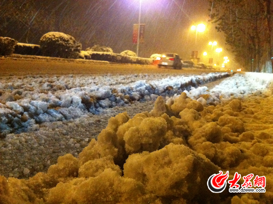 20點(diǎn)30分,濟(jì)南市經(jīng)十東路部分路段積雪達(dá)10厘米以上。