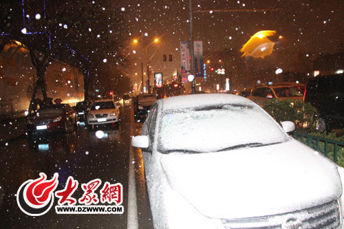 路邊停靠的汽車上已蓋上了一層白衣