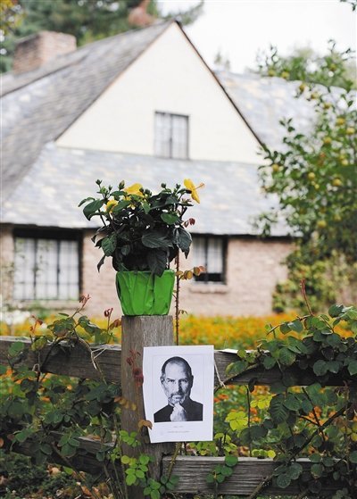 周四,當喬布斯去世的消息傳遍全世界,這兩輛車也開走了,屋側的人行道上擺滿了花圈、蠟燭與蘋果,每個蘋果都被小心翼翼地咬去一口。