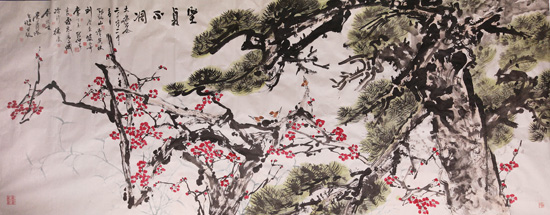 參加筆會書畫家合作的丈二巨幅作品《堅貞不凋》。