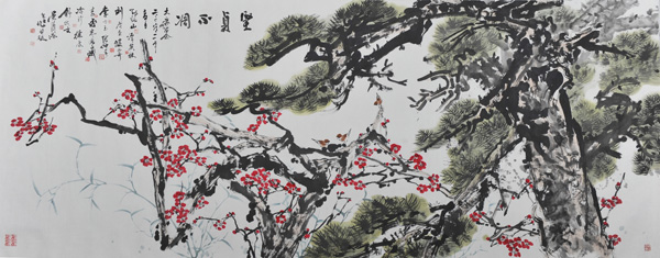 參加大眾網(wǎng)成立十周年書畫筆會的書畫家合作的丈二巨幅作品《堅(jiān)貞不凋》。