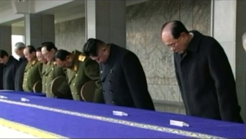 28日,金正恩等朝鮮黨政軍領導人、各界人士及外國駐朝使節出席了在平壤舉行的金正日遺體告別儀式。當天下起了雪,朝鮮數十萬群眾冒雪在街頭送別金正日。