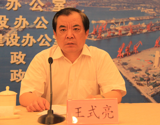 煙臺市政協副主席、發展改革委主任王式亮介紹山東半島藍色經濟區海洋食品博覽會。