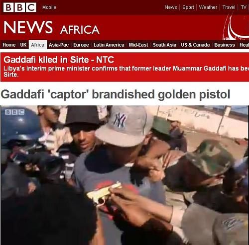 據(jù)BBC報(bào)道,在卡扎菲被反對派殺死的消息之后,有一個二十多歲的年輕士兵聲稱,當(dāng)時(shí)是他抓住了卡扎菲。