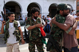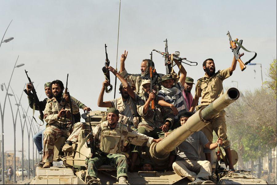 當地時間10月20日,利比亞執(zhí)政當局士兵在蘇爾特街頭慶祝。