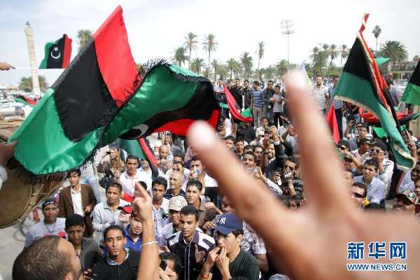 10月20日,在利比亞的黎波里,人們?cè)诼犅効ㄔ埔褌厣硗龊蟮南⒑笥涡袘c祝。利比亞“全國(guó)過渡委員會(huì)”執(zhí)行委員會(huì)主席賈布里勒20日在新聞發(fā)布會(huì)上證實(shí),卡扎菲當(dāng)天在蘇爾特身亡。新華社發(fā)(哈姆扎·圖爾基亞攝)