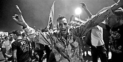 22日凌晨,數千民眾聚集到綠色廣場慶祝。